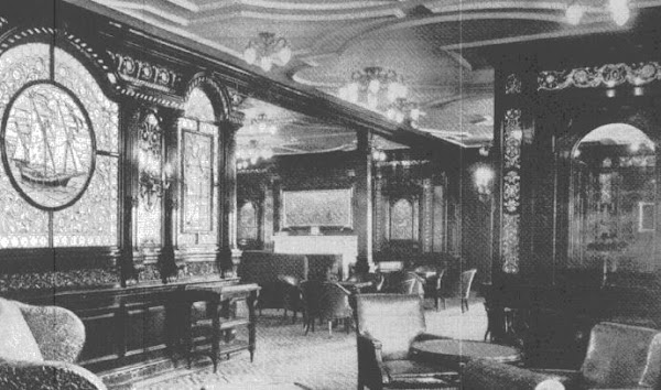 The interior of the R.M.S. Titanic was lavish. It offered every luxury that could be enjoyed in 1912. After the mechanics of the ship, the interior was the most detailed. Hand carved oak, teak and maple woodwork was everywhere. Only the most lavish furniture was used. The bathrooms were finished in the most modern style of the times complete with showers, bath tubs and double sinks. There was even flushing toilets on board the ship. Huge dinning rooms sat several hundred and after a good meal passengers could retire to one of the several smoking lounges for drinks and cards. There was a complete, up-to-date gymnasium for workouts and even a regulation sized indoor swimming pool. There were clothing shops, a barbershop and a beauty salon. Racketball courses were on deck along with areas for other games. The Titanic was the most luxurious ocean liner ever built at the time. The following are photos taken of the ship's interior right after it was built and shortly before it sailed. Also, there are photos of passengers enjoying the ship not knowing that, for many, this would be the last event of their lives.